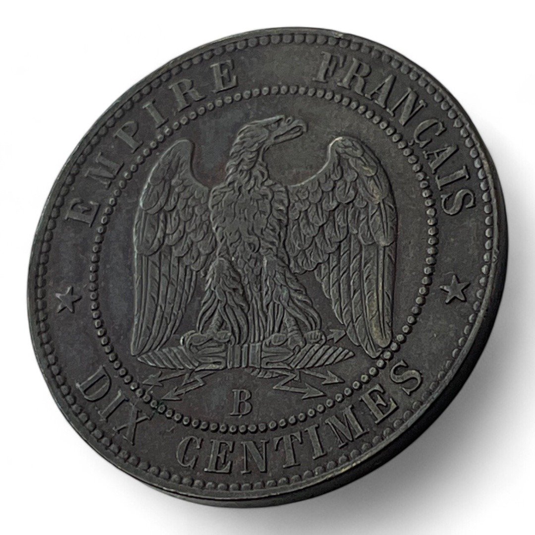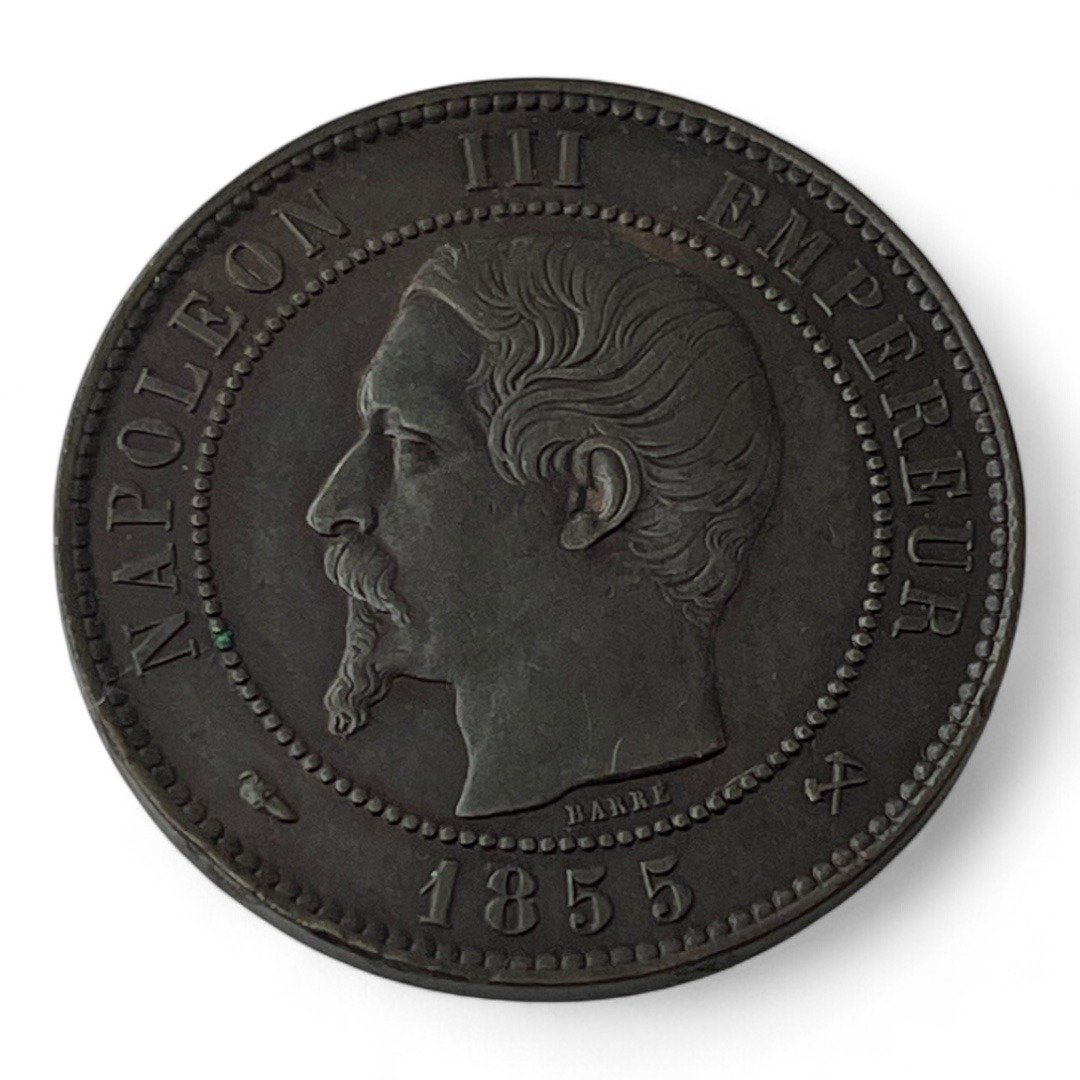 Monnaie de 10 Centimes Napoleon III Empereur – 1855 B avec le différent Chien – En bronze.