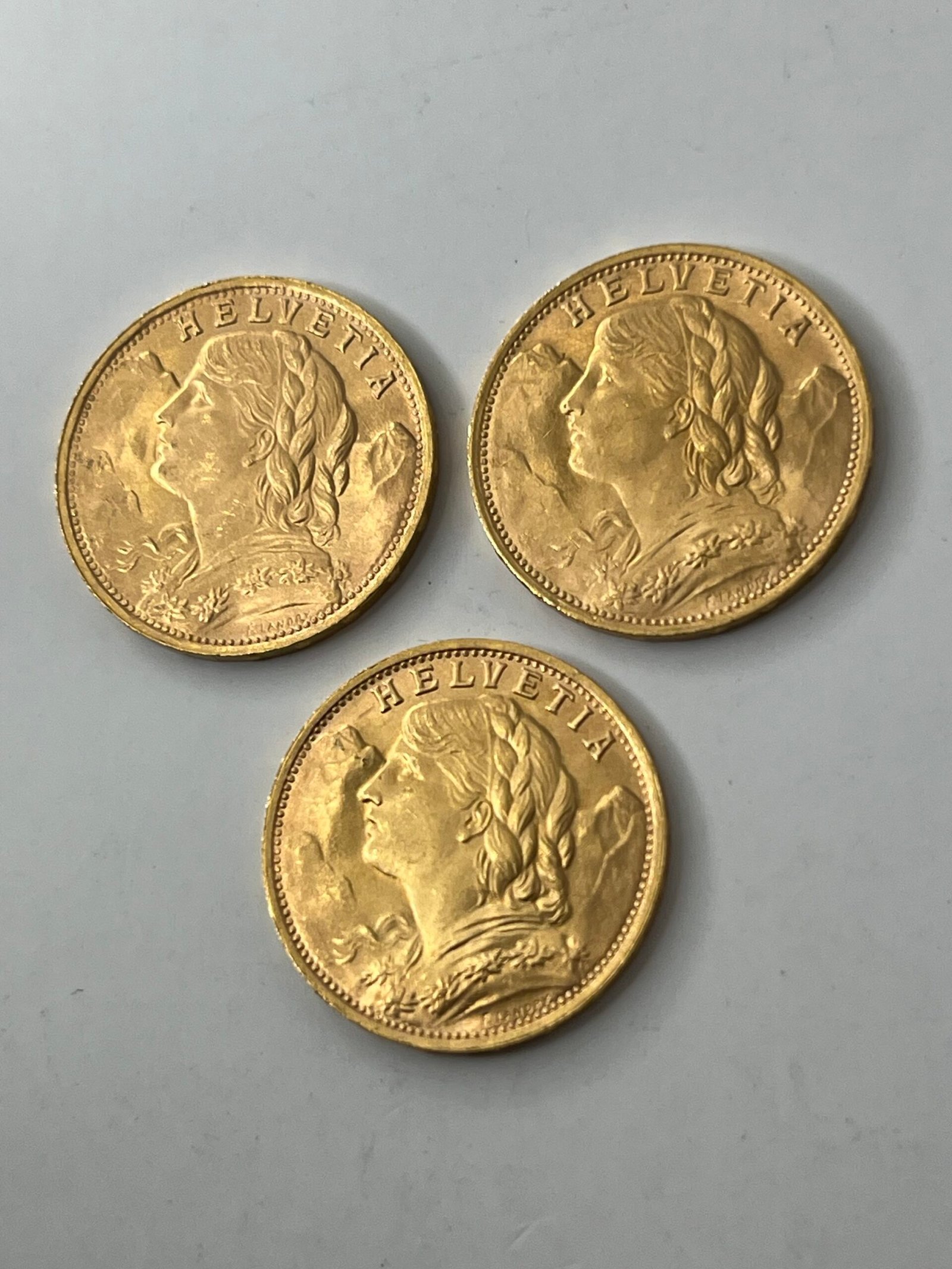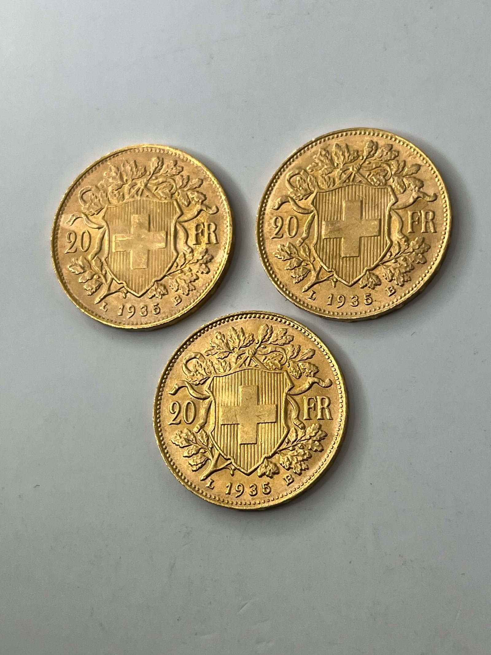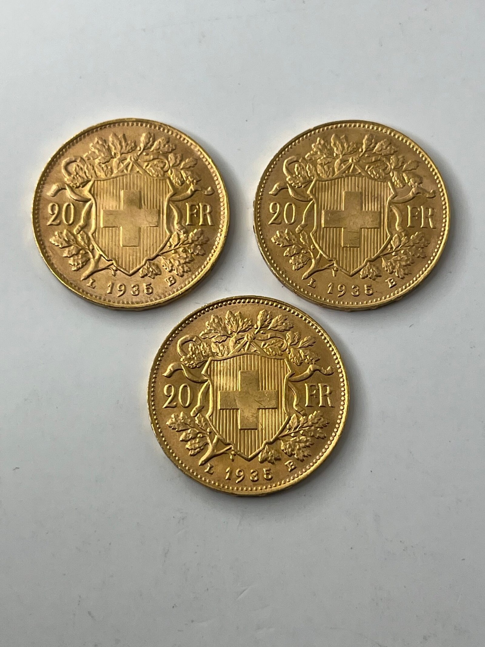 Lot de 3 monnaies de 20 francs coq.
