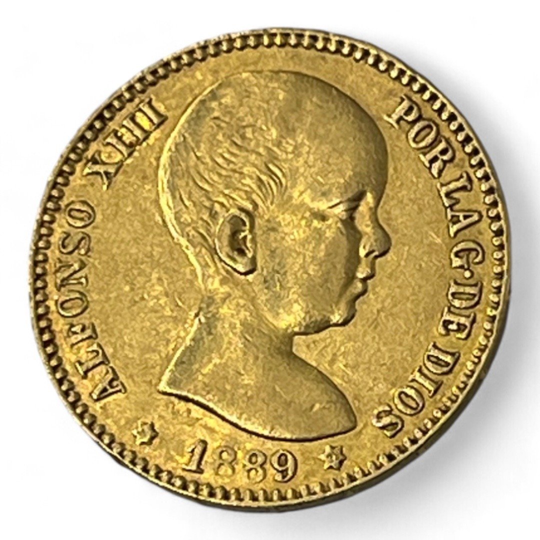 Monnaie de 20 pesetas du roi Alphonse XIII tres jeune.