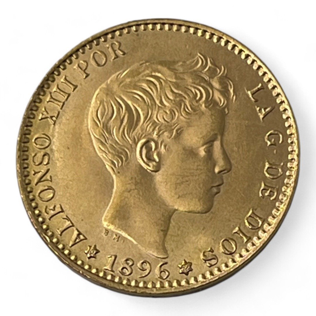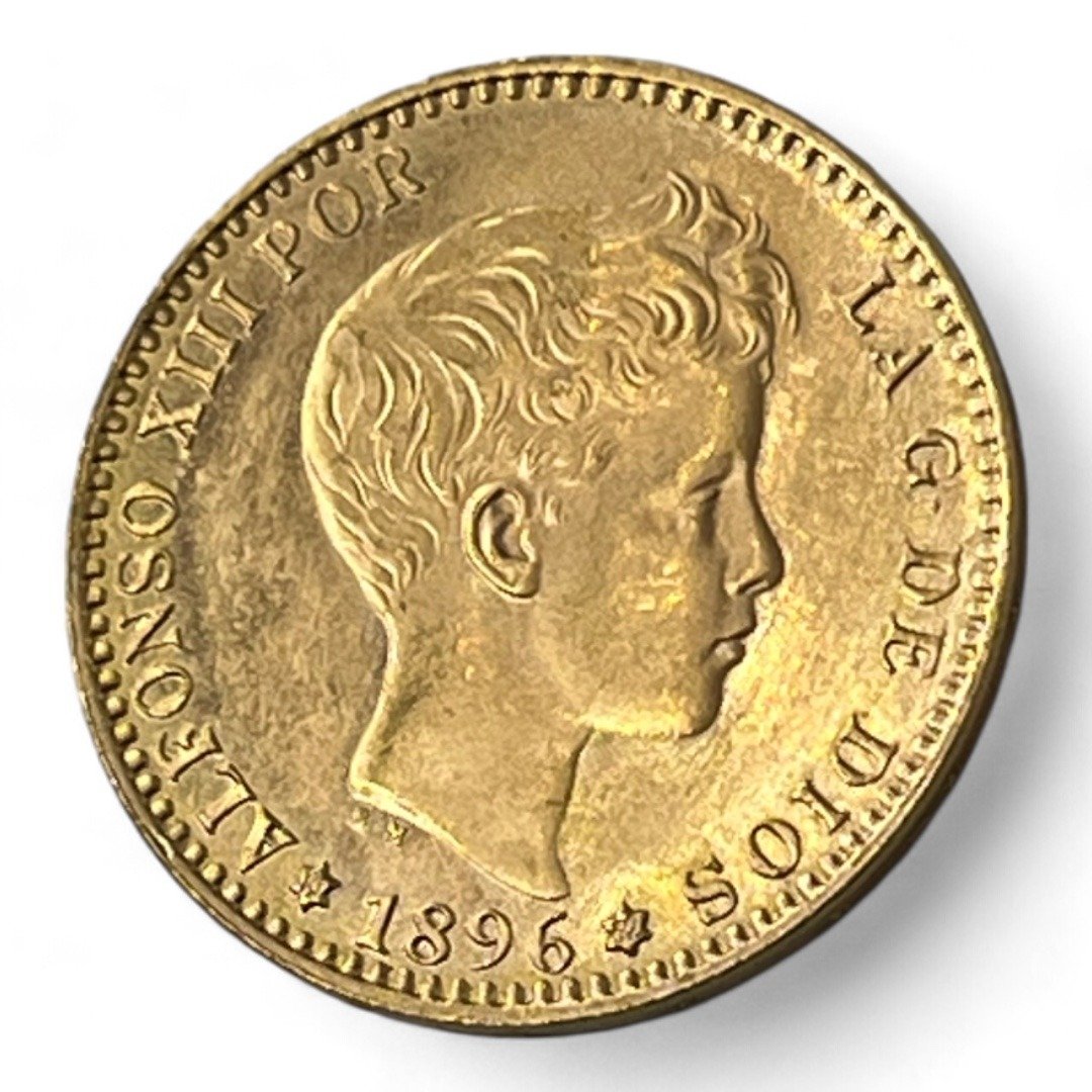 20 Pesetas – Espagne – Alphonse XIII – Toupet – 1896 – Or – refrappe – Splendide!
