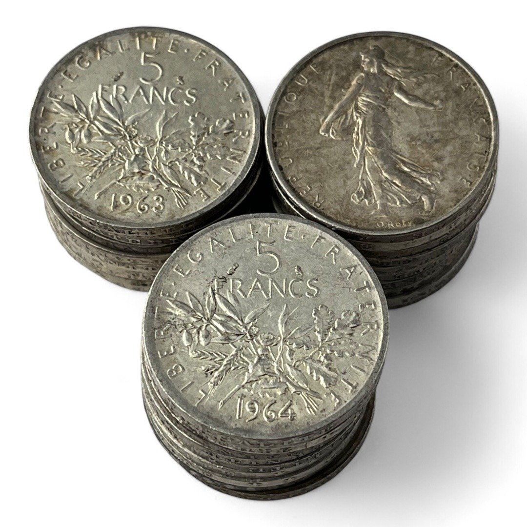 Lot de 30 monnaies de 5 Francs Semeuse – 12g – Argent 835/1000