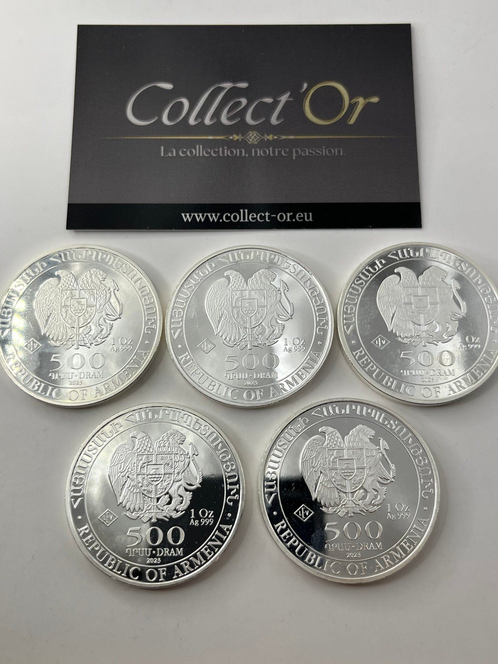 Lot de 5 monnaies – 1 oz / Once – Armenia (31.1 grammes) en Argent 999.9 – 2023