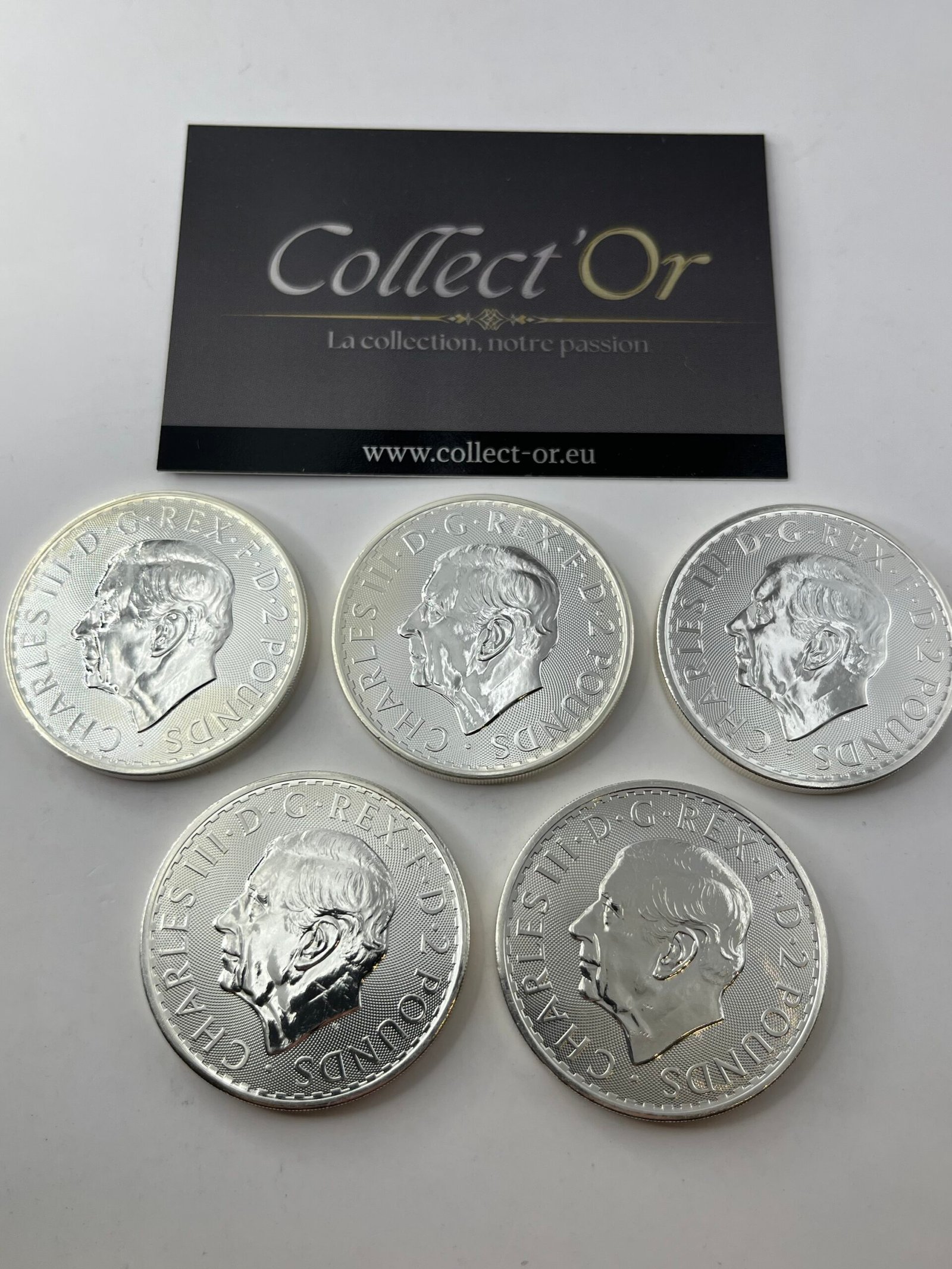 Lot de 5 monnaies – 1 oz / Once – Britannia – Charles III – Angleterre (31.1 grammes) en Argent 999.9 – 2024