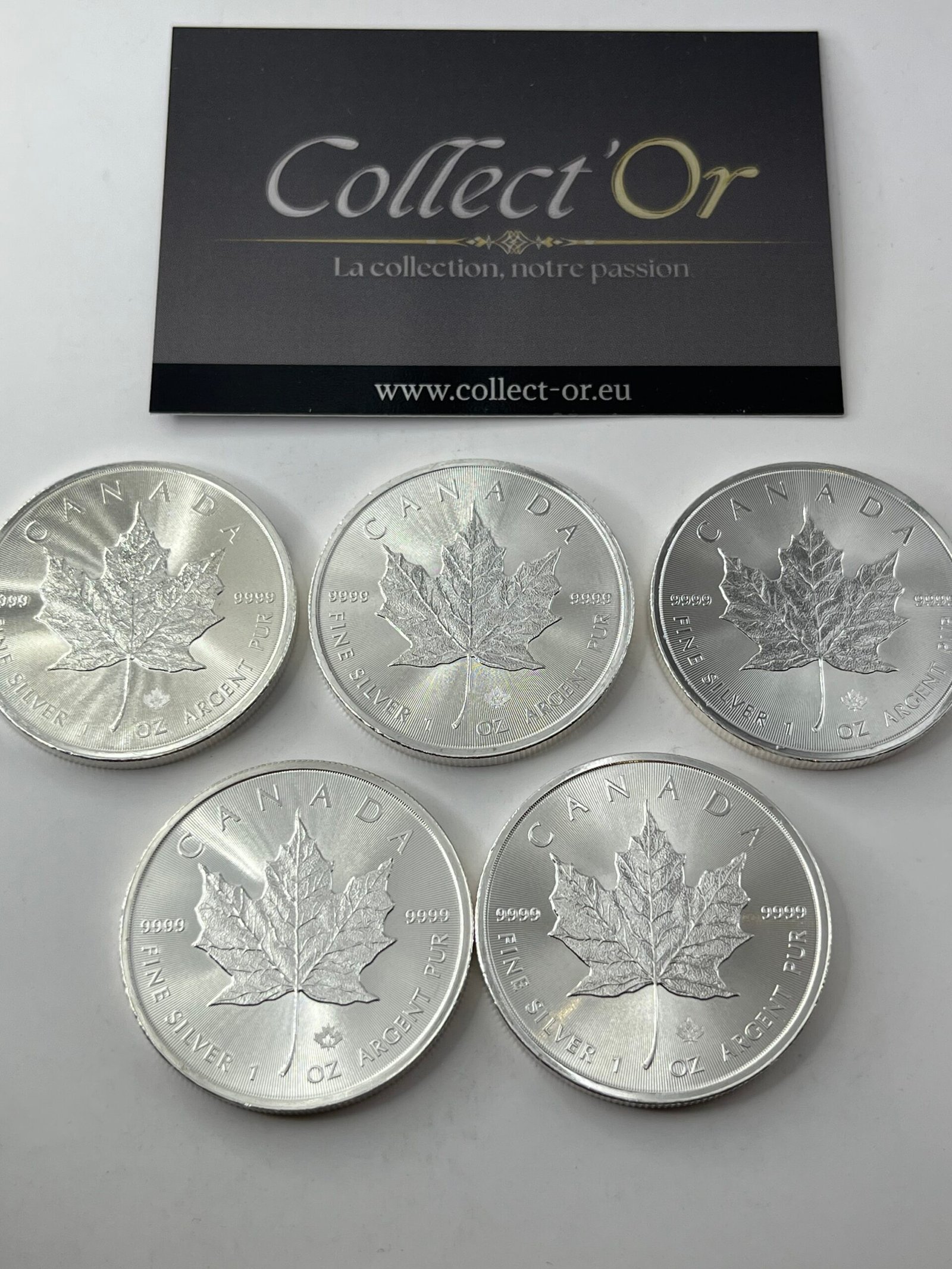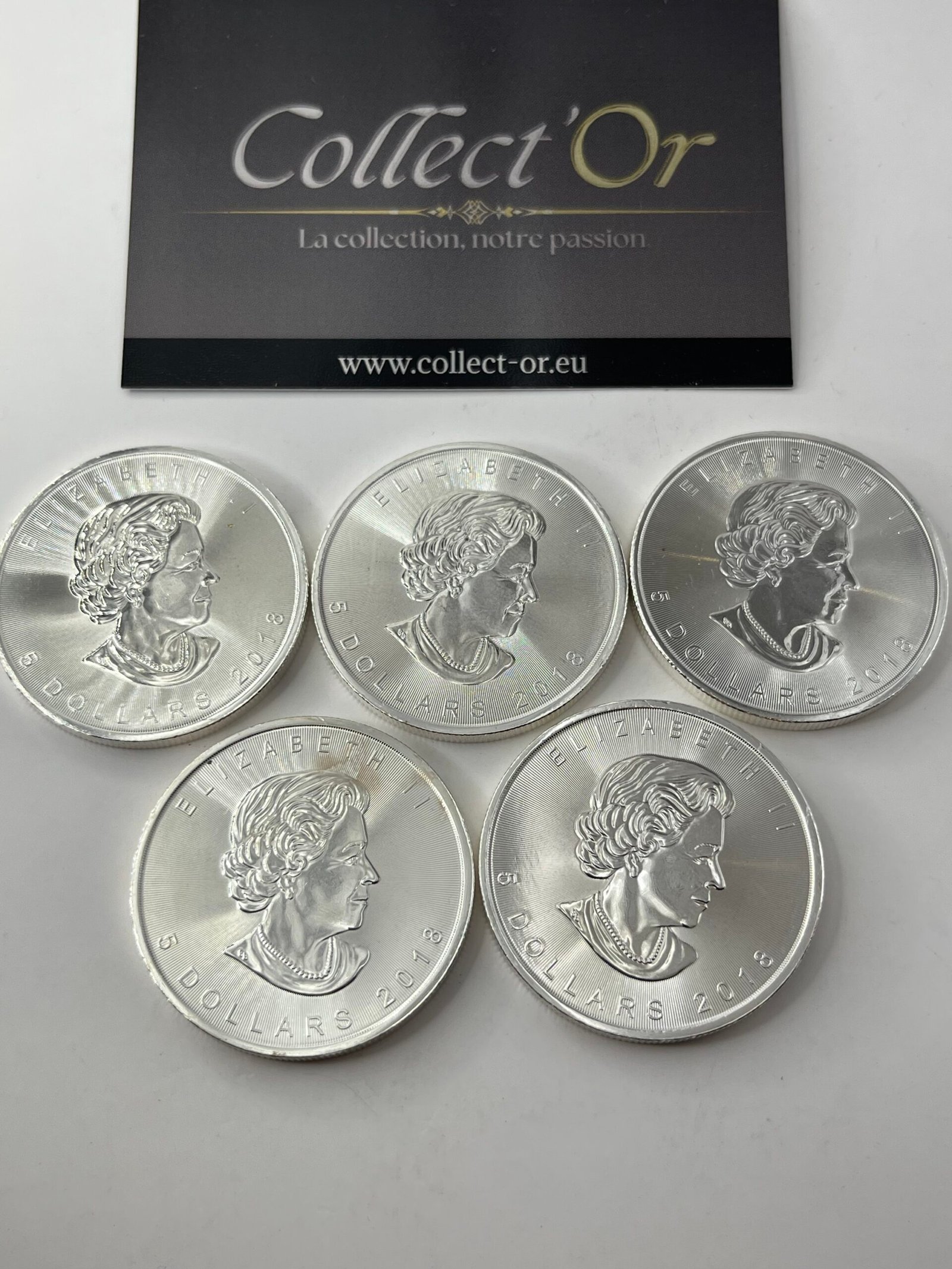 Lot de 5 monnaies – 1 oz / Once – maple leaf canada (31.1 grammes) en Argent 999.9 – 2018